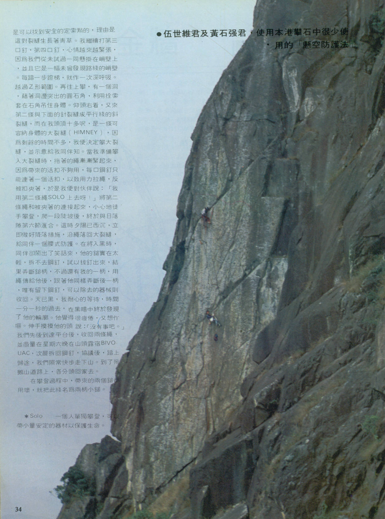 伍世維, 當年首次嘗試以懸掛式Belay首攀飛鵝山